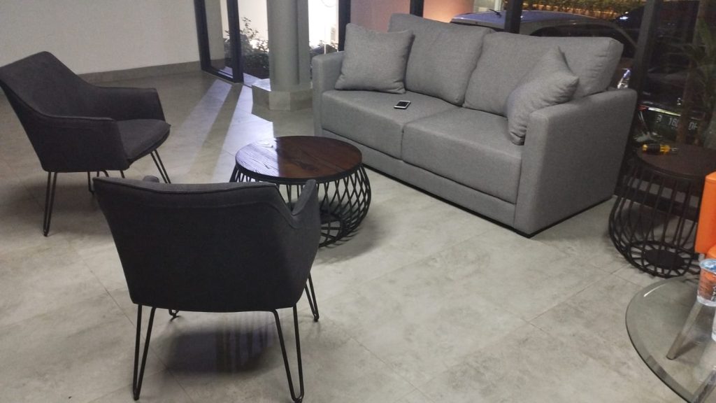 Penggunaan material logam, seperti besi dan baja, pada furnitur, aksesori, atau elemen dekorasi.